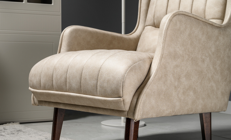 Стежка в верхней части спинки и передней части сиденья. Декоративный кант в тон на подлокотниках и передней части сиденья.
