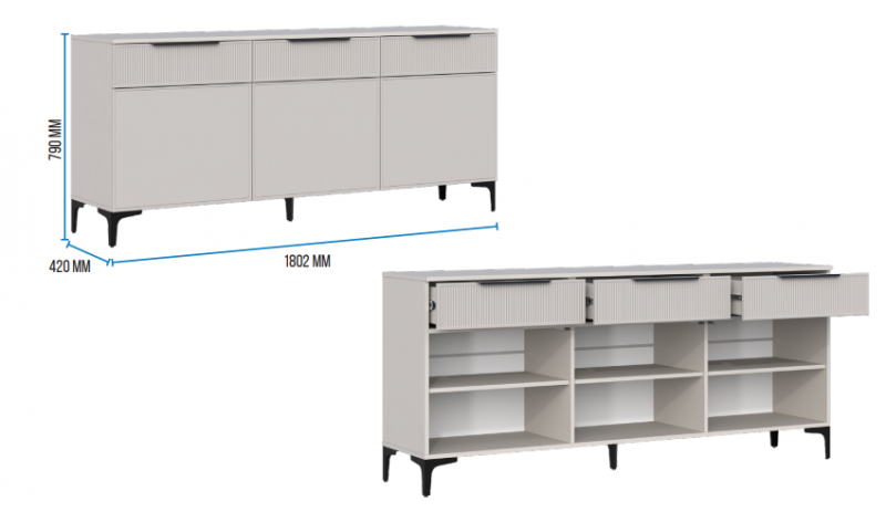 Тумба 3 ящика 3 створки Кимберли на 1800 - Мебель | Мебельный | Интернет магазин мебели | Екатеринбург