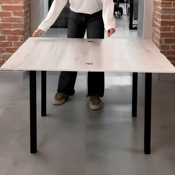 Дизайнерский стол Феникс — стильное и практичное решение для вашего рабочего пространства. Поворотная раскладная столешница из прочного ЛДСП позволяет легко менять конфигурацию и адаптировать стол под любые задачи. Надёжный металлический каркас обеспечивает устойчивость и долговечность, а современный дизайн станет ярким акцентом в интерьере. Идеально для дома и офиса!