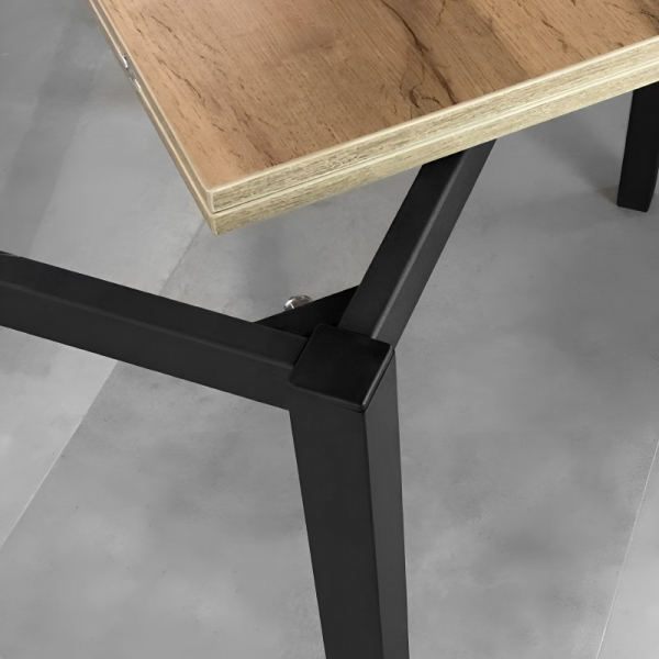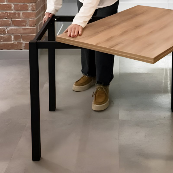 Изделие состоит из столешницы, подстолья и опор. Столешница изготовлена из ЛДСП толщиной 16 мм. Края столешницы облицованы ударопрочной кромкой ПВХ 2,0 мм. Подстолье изготовлено из стальной трубы 40х20 мм с толщиной стенки 1,5 мм и стальной трубы 20х20 мм с толщиной стенки 1,2 мм. Подстолье крепится к столешнице через поворотный механизм. Опоры стола изготовлены из стального профиля 40х40 мм с толщиной стенки 1,5 мм и шпильки резьбовой М10. На опорах установлены пластиковые заглушки. Опоры крепятся к подстолью при помощи гайки М10. Все металлические части каркаса покрыты полимерно-порошковой краской.