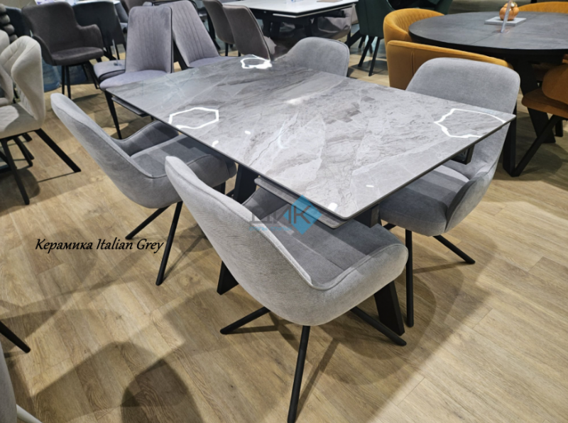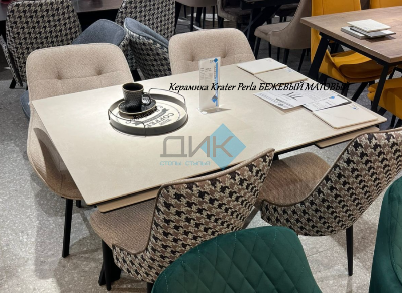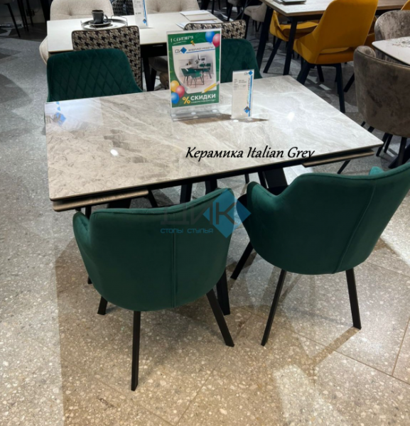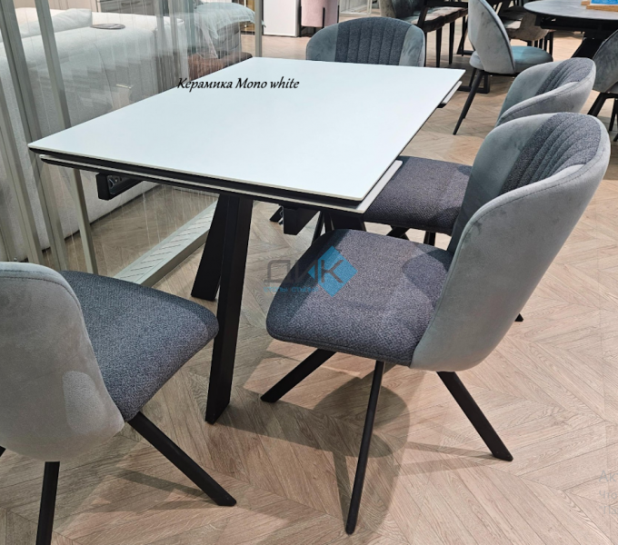 Стол с керамической столешницей - смотрится элегантно за счет тонких линий в конструкции подстолья и столешницы. Данная модель очень устойчива благодаря 4 опорам.