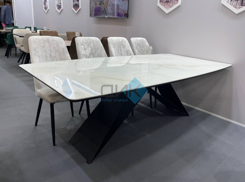Столешница выполнена: керамика (6 мм) глянец+ МДФ 16 мм. Рама металлическая, крашенная.