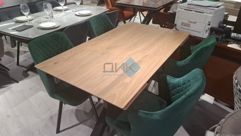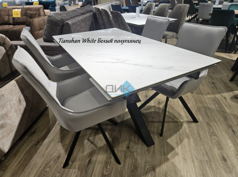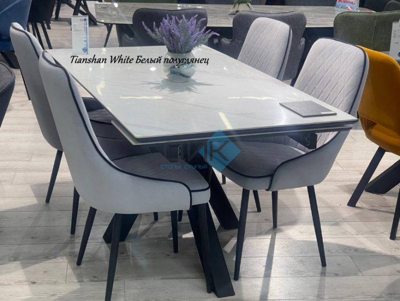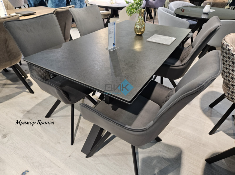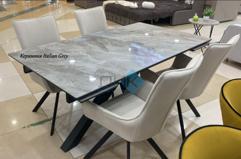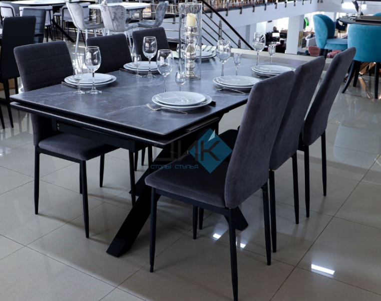 Стол с керамической столешницей - смотрится элегантно за счет тонких линий в конструкции подстолья и столешницы. Данная модель очень устойчива благодаря конструкции опор.