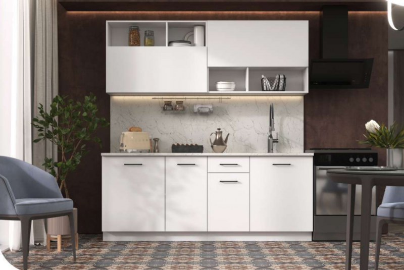 Столешница 1000мм+1000мм, высота 26 мм, декор Белый Мрамор.
