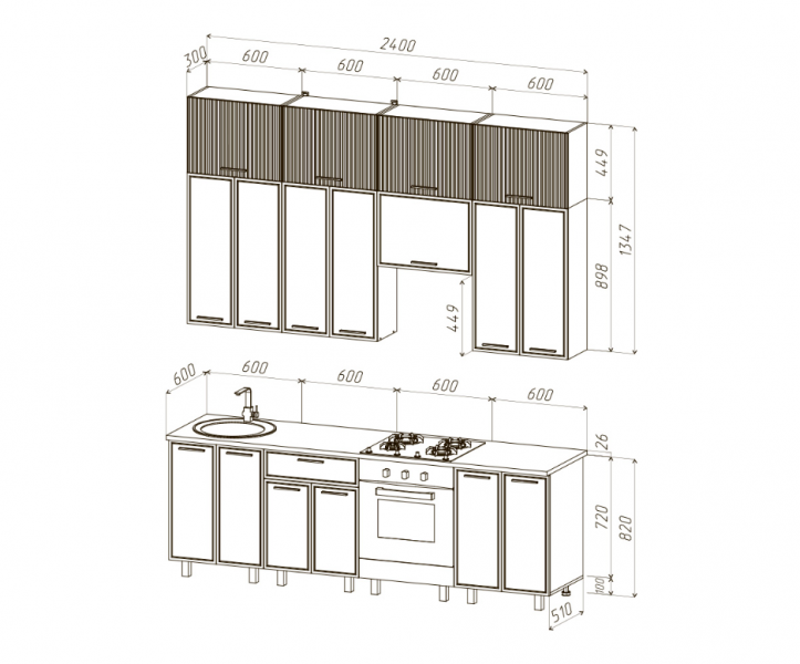 Кухня Бьянка 2,4/1350 на 2400
