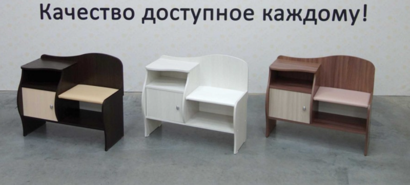 ЛДСП толщиной 16мм., в качестве мягкого основания использован поролон и обивка из винил кожи. Прекрасное решение для небольших прихожих. Универсальная сборка на любую сторону.