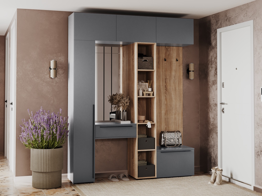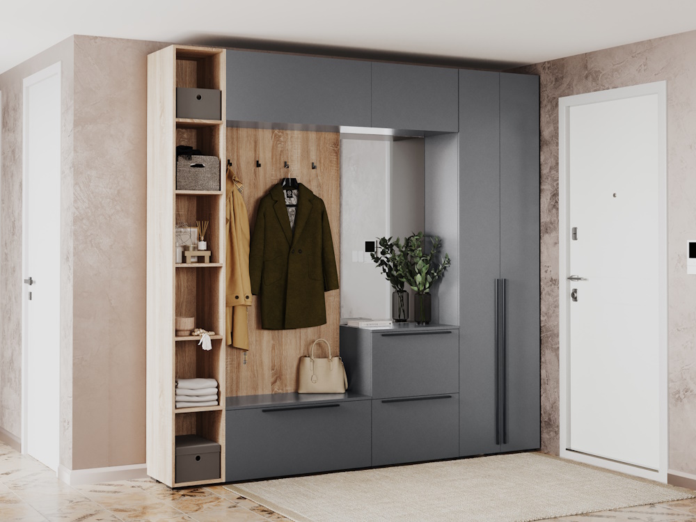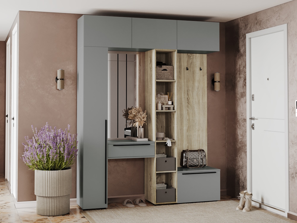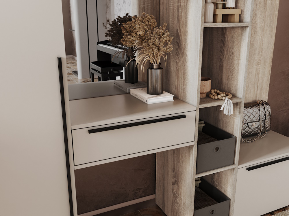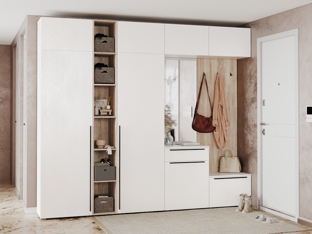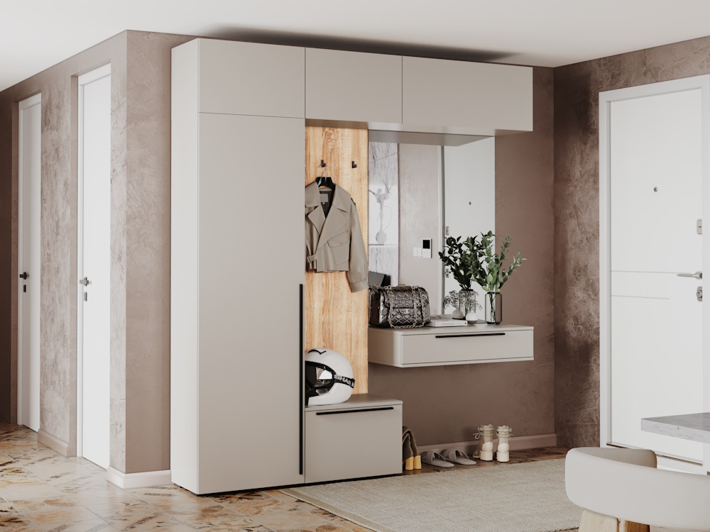 Создайте единый стиль во всем доме — модули спальни «Люмьер» идеально комбинируются с элементами одноименной прихожей, открывая безграничные возможности для гармоничного оформления пространства