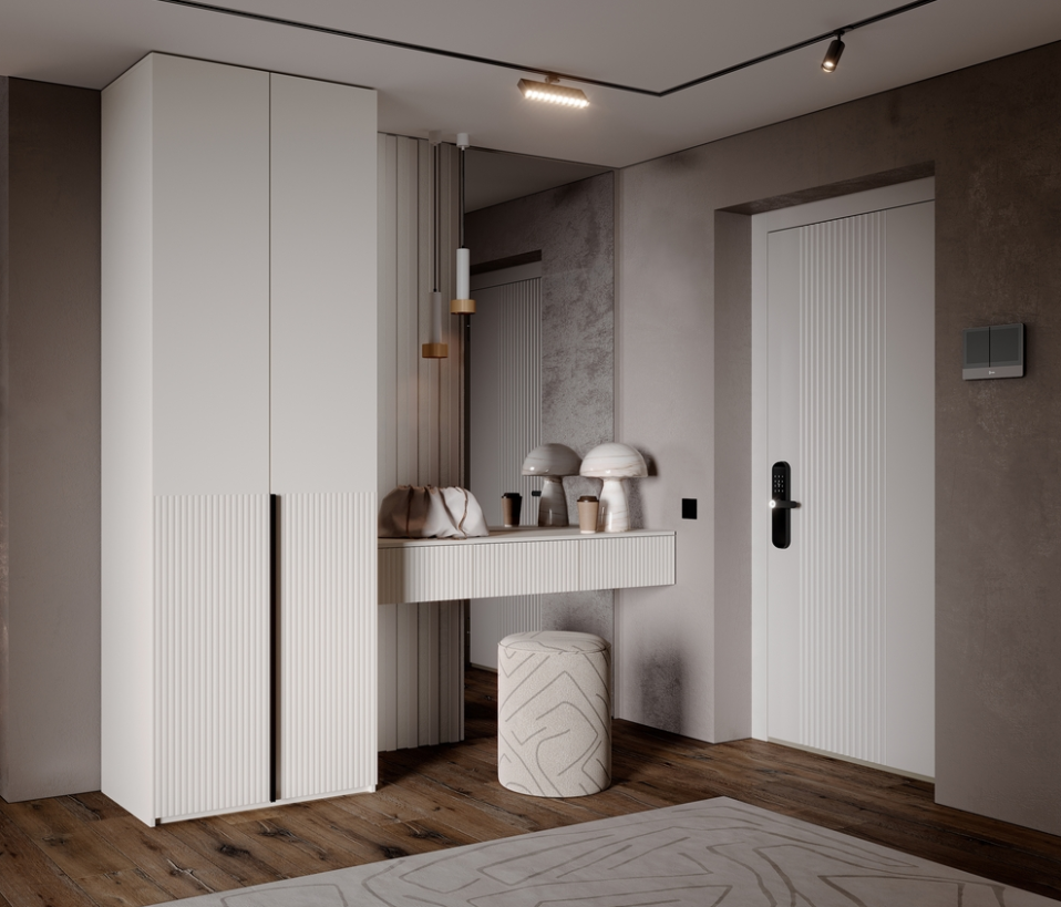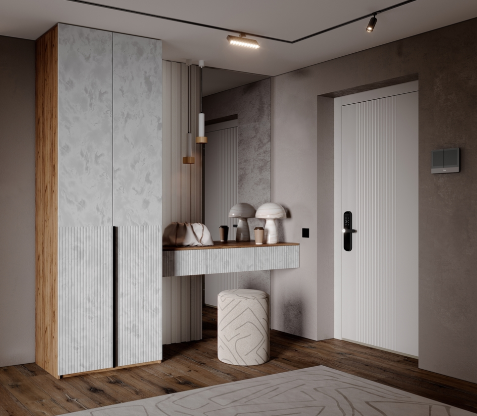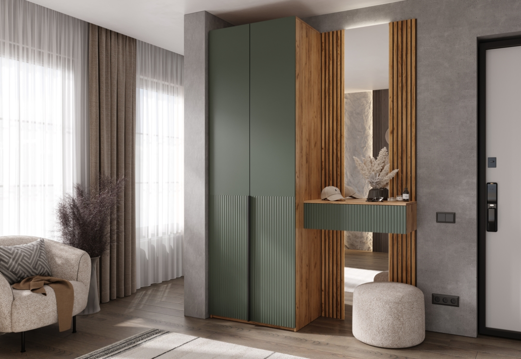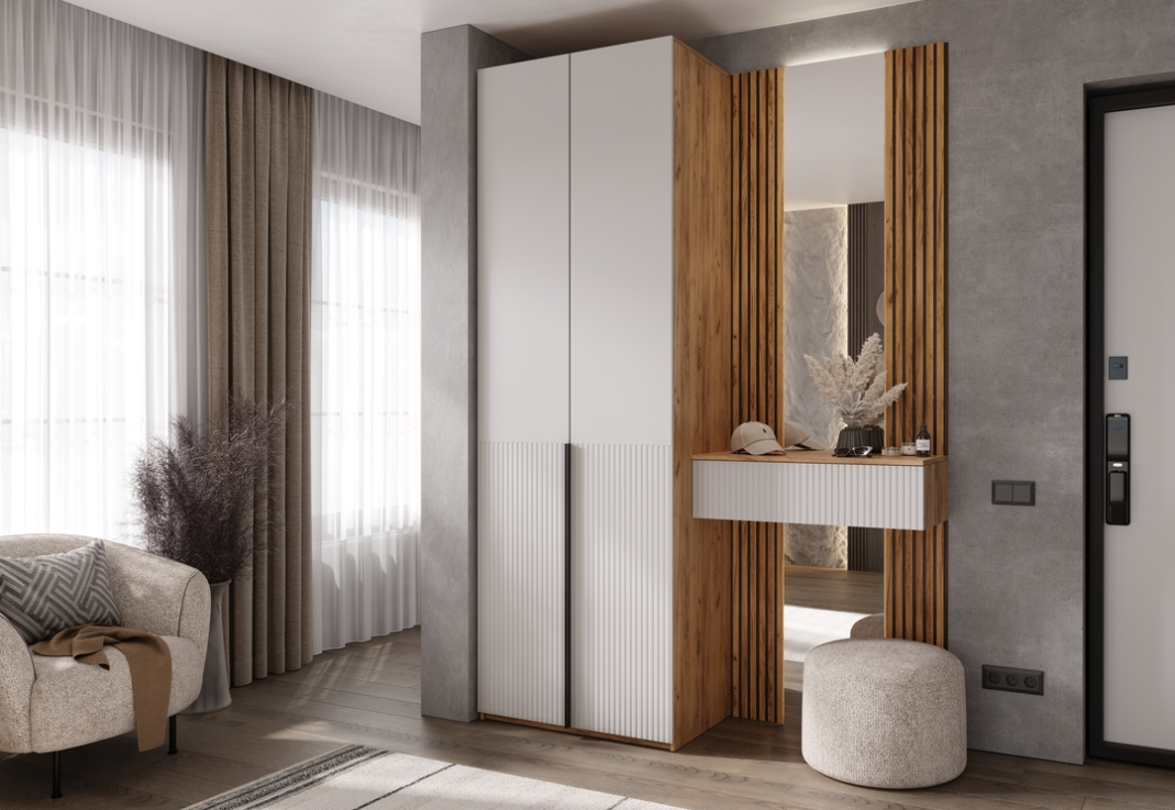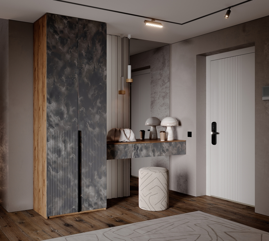 Современное решение для прихожей, где каждая деталь продумана с точки зрения функциональности и эстетики. Прихожая состоит из трех гармонично сечетающихся модулей, формируя цельный и аккуратный образ. Марвэл-это баланс минимализма, теплых материалов и функциональности.