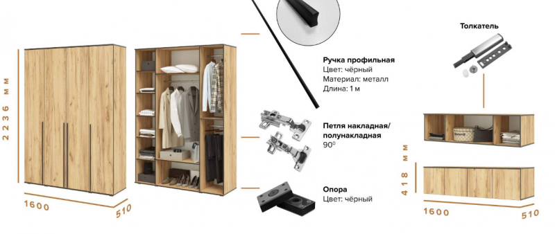 Размеры: (Ш.В.Г.) 1600*2654*510