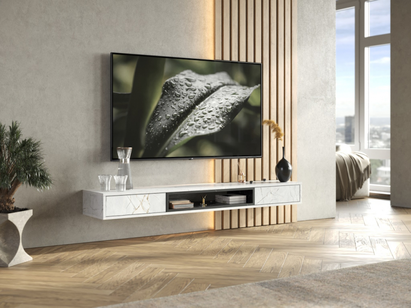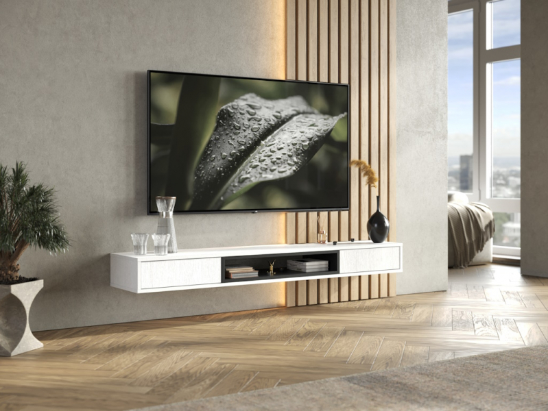 Тумбы ТВ «Амели» - красота освобождает пространство. Устали от громоздкой мебели, которая «съедает» пространство? Хочется легкости, порядка и безупречного стиля? Данная тумба именно то решение, которое преобразит Вашу зону отдыха! Навесной дизайн создает ощущение невесомости, делает комнату визуально просторнее и светлее. А еще под ней так удобно мыть пол! Вместительные полки и ниши помогут навести порядок: пульты, игровые приставки, книги, декоративные мелочи - всему найдется свое место. Выберите оптимальную длину для вашего ТВ и пространства. Впишется в любой интерьер, от классики до лофта. Это не просто тумба, это ключевой акцент Вашей гостиной. Она сочетает в себе лаконичный европейский дизайн, продуманную эргономику и безупречное качество материалов.