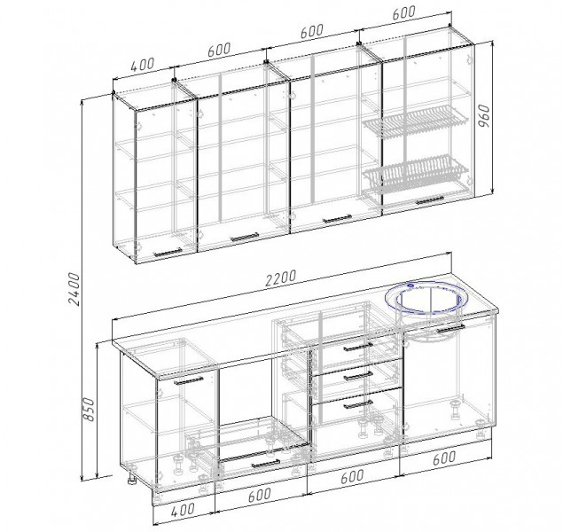 - Фасады со свесом – дают возможность использовать верхние модули без установки ручек, а также установить скрытую подсветку
