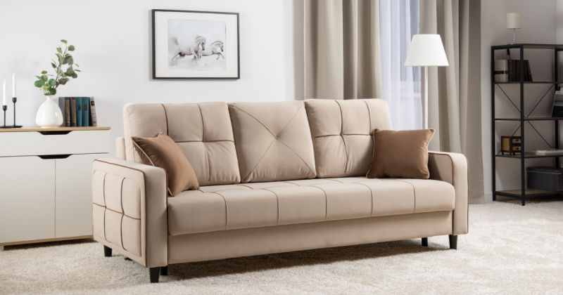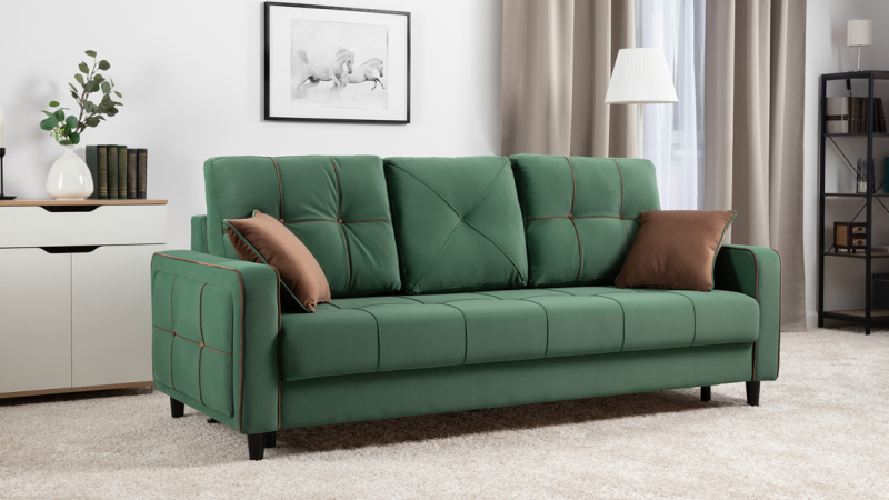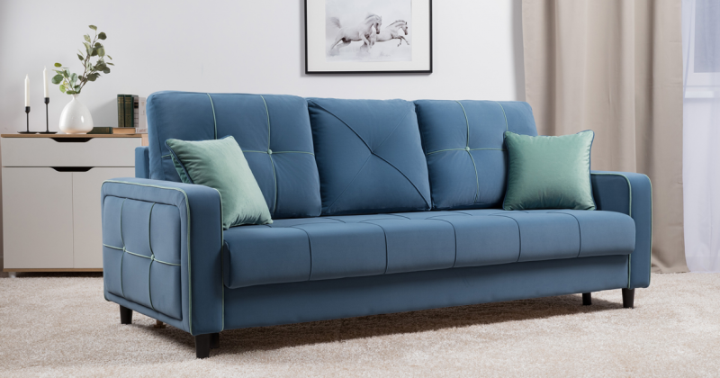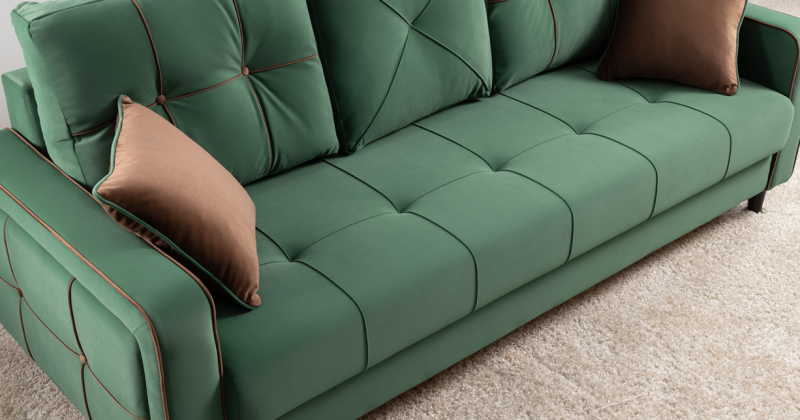 Декоративные канты на подушках и вставке подлокотников. Пуговицы в местах пересечения кантов