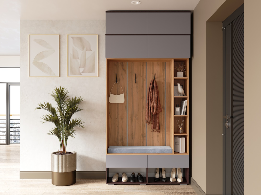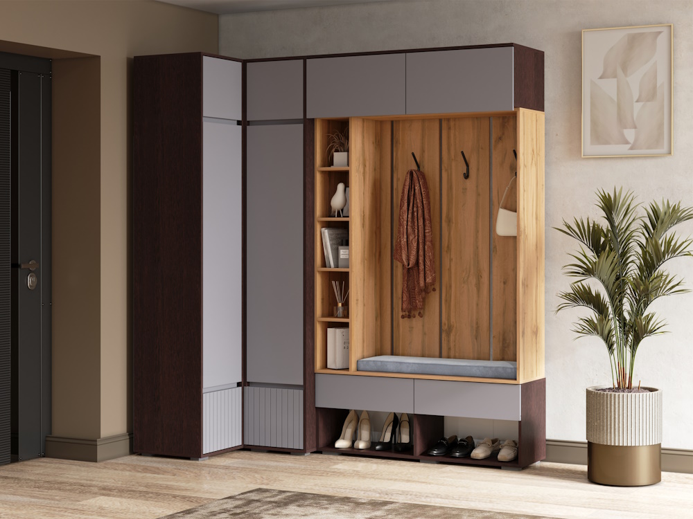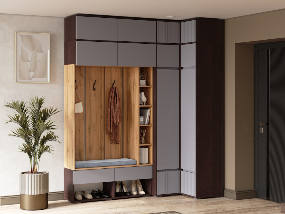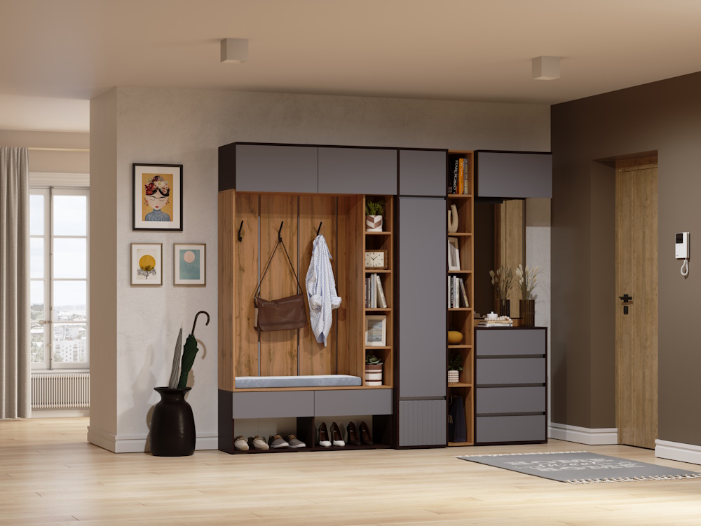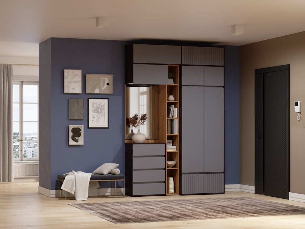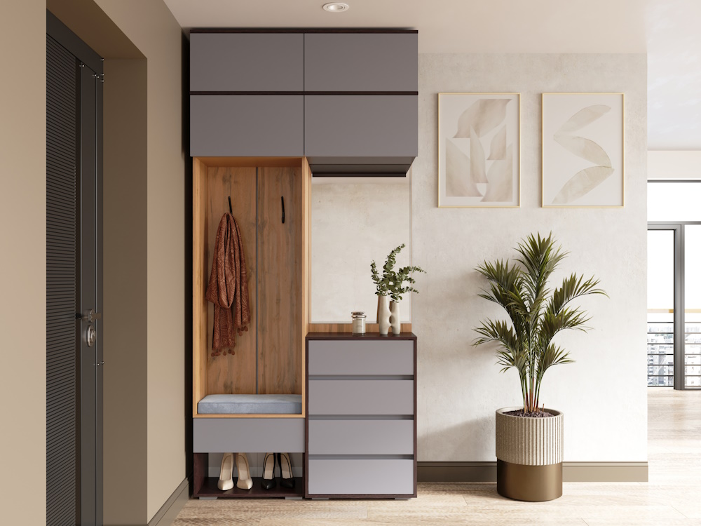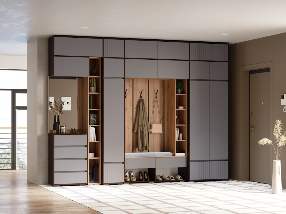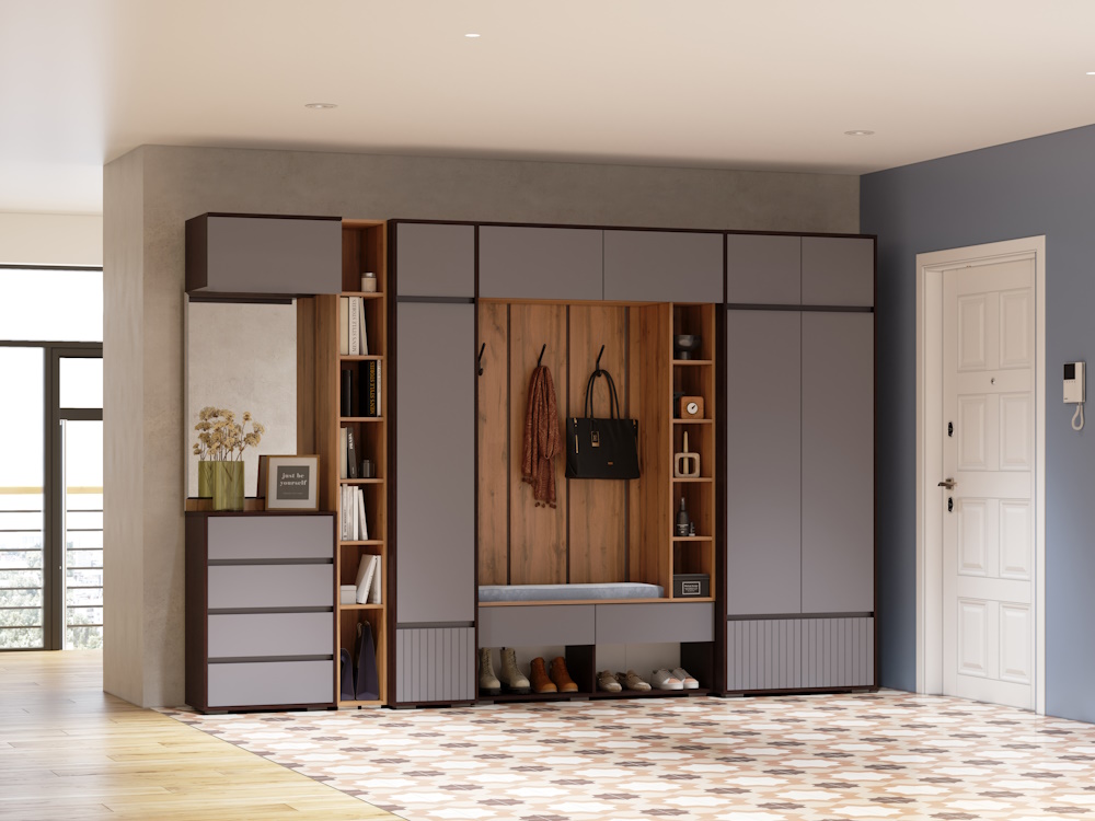 Вы можете собрать модульную прихожую под любое Ваше желание, если добавить антресоли общая высота прихожей составит 2,5 метра.