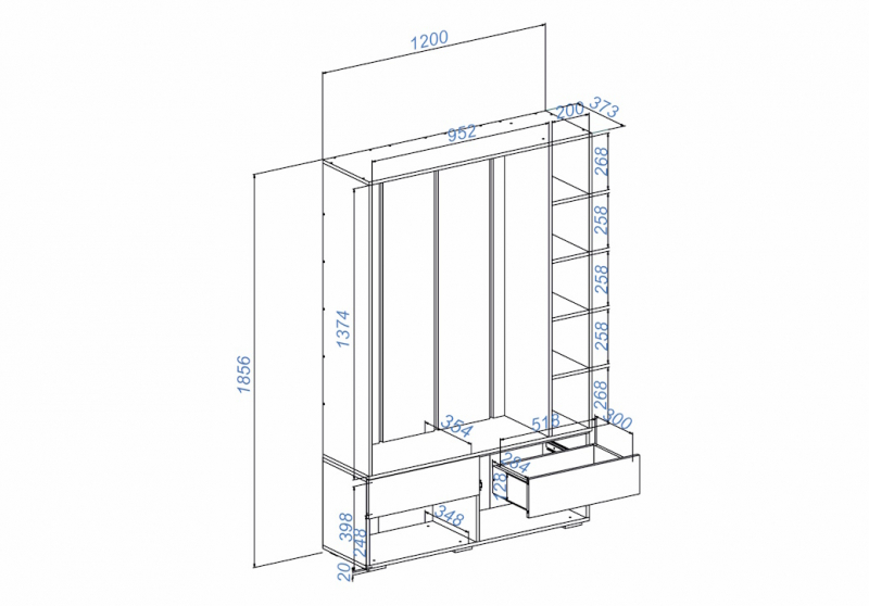 Размеры: (Ш.В.Г.)  1200*1856*373