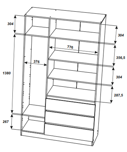 Шкаф Мори МШ 1200 с 3 ящиками и 3 дверьми - Мебель | Мебельный | Интернет магазин мебели | Екатеринбург