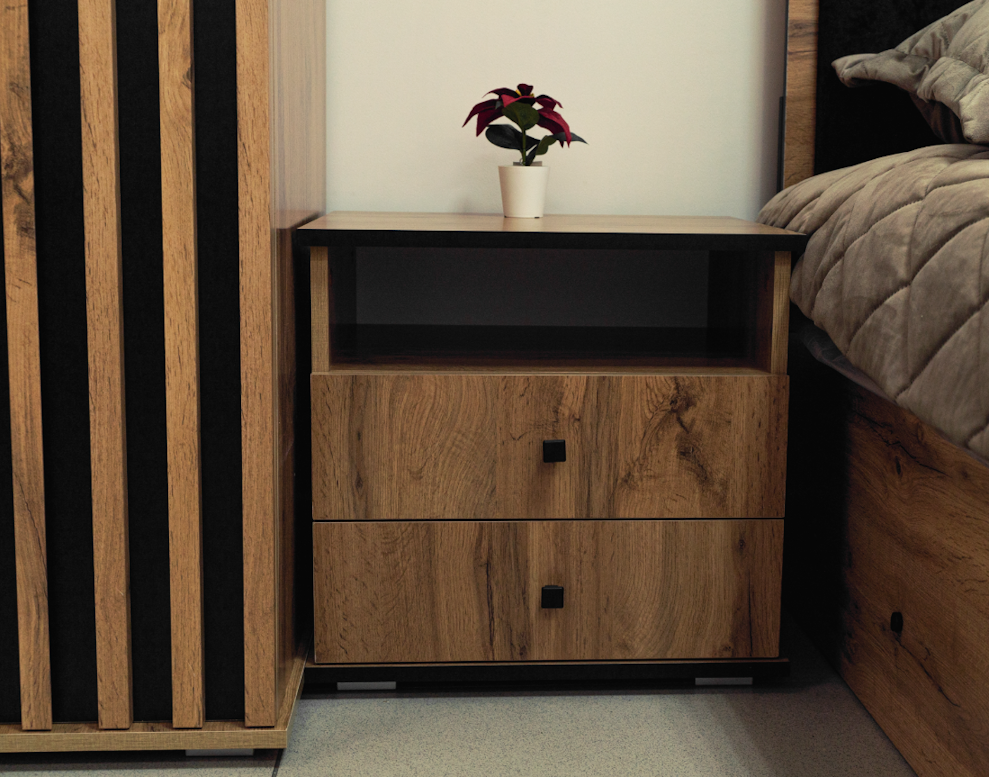- сочетание природного цвета дуб вотан с черным цветом делают мебель одновременно строгой и лаконичной, при этом стильной и уютной