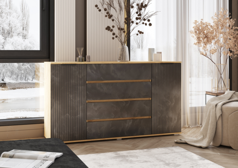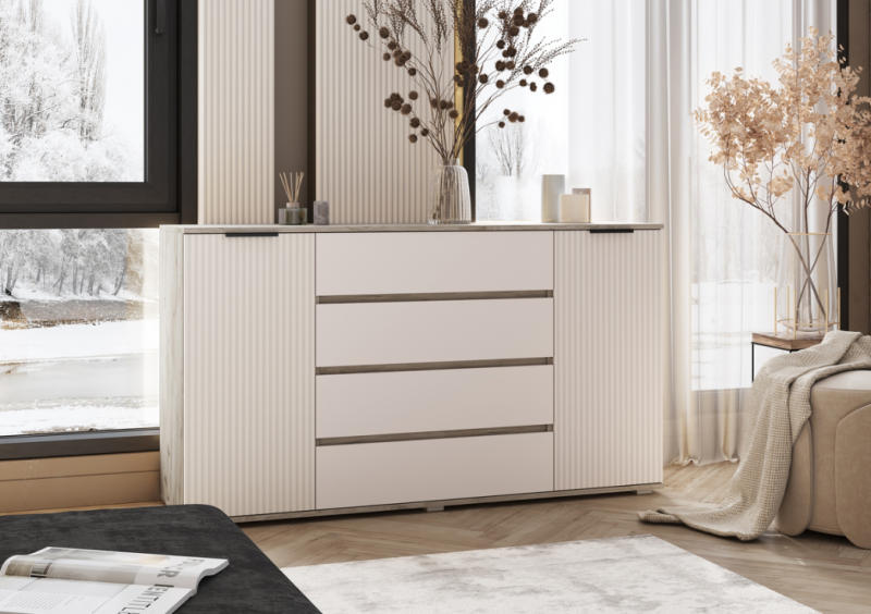 Главная / Каталог / Спальни / Спальня Марвэл Миф / Спальня Марвэл Миф Комод 2 двери 4 ящика