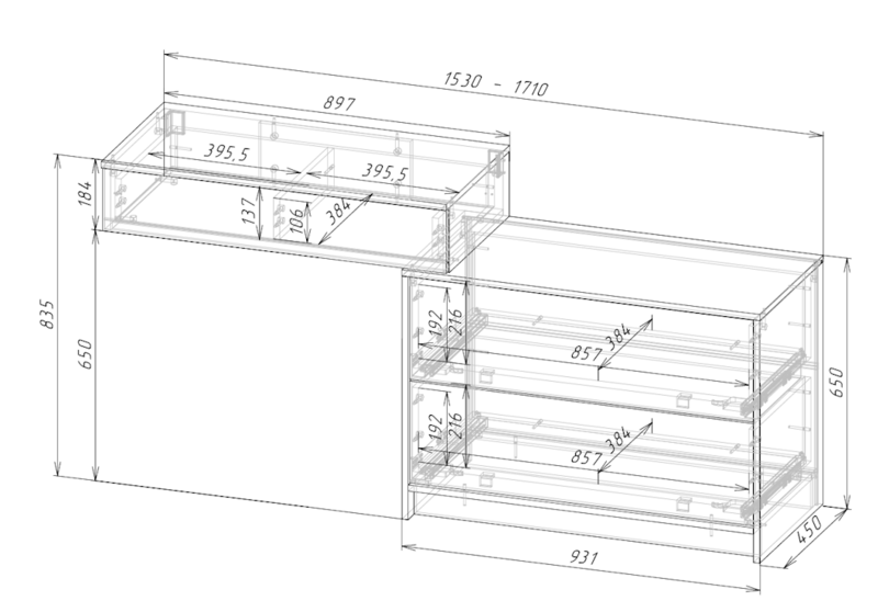 Размеры (Ш.В.Г.): 1530*835*450