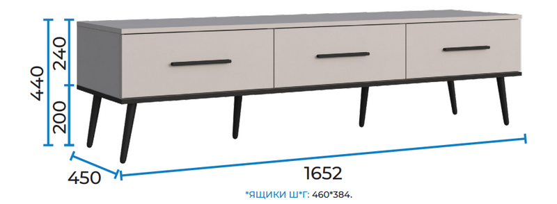 Размеры: (Ш.В.Г.) 1652*440*450